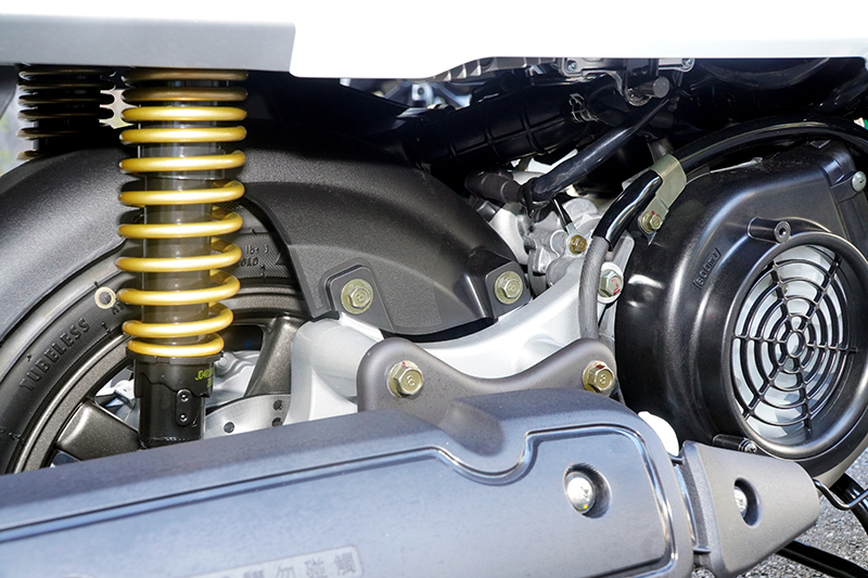 然而PGO在車輛烤漆的質地上向來也十分講究,在這回推出的Spring125 B&W 特仕版上尤為明顯,一般機車若是採黑或白車色,如果烤漆的飽和度不足,就會讓整輛車顯得不夠亮眼,甚至俗氣,但Spring125 B&W 特仕版的漆面卻處理的十分飽滿,在炫亮白車色中,加入了珍珠銀粉,讓整輛車呈現潔白透亮的質感;而古馳黑車色部分,雖然是採霧面處理,但黑漆的色澤很飽,甚至會黑到發亮,兩者都再搭配金色的車身彩繪線條及Spring BW字樣,達到畫龍點睛效果,整體質感在國產機車中提升到另一層更高的層次。
