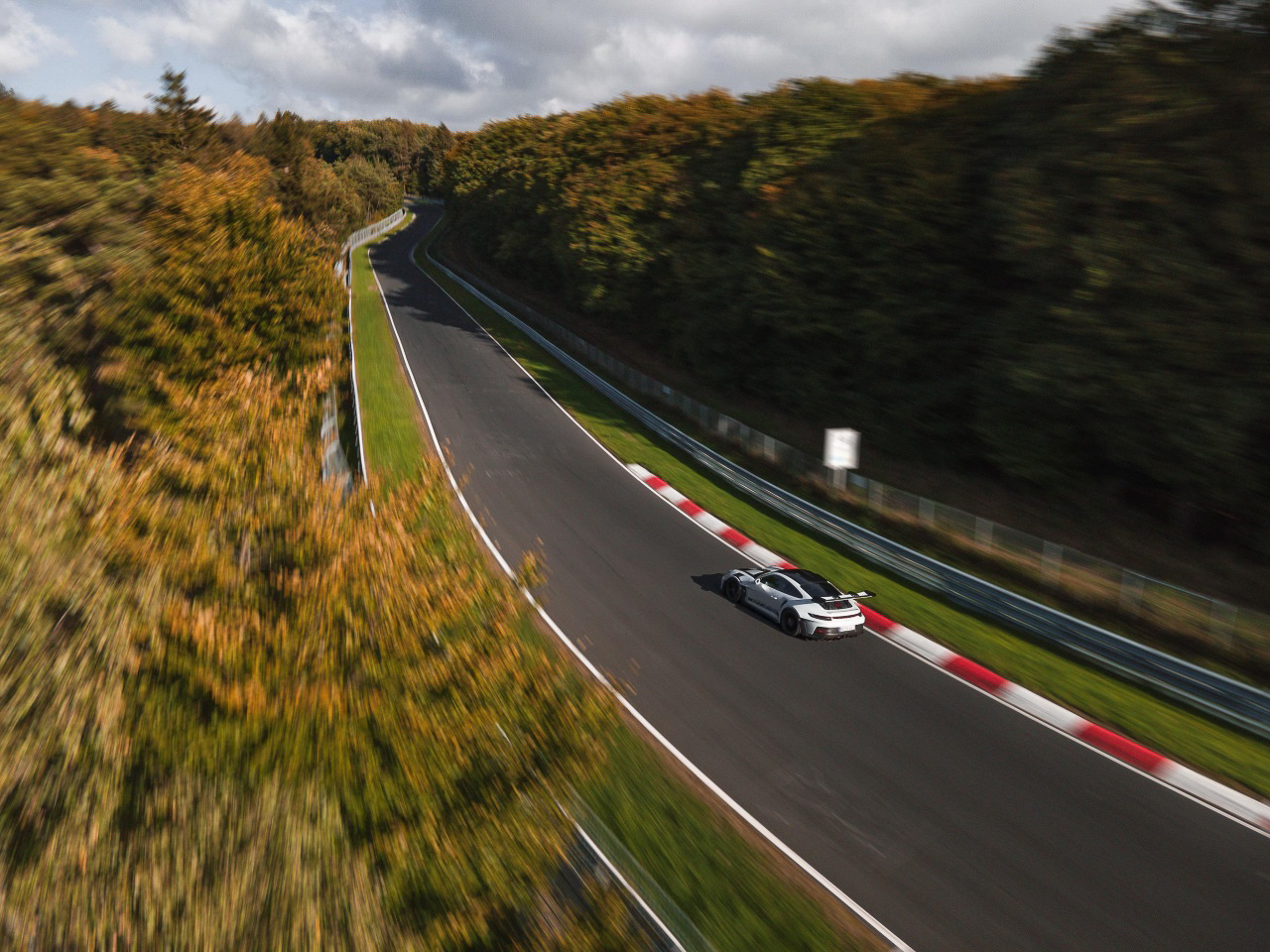 全新保時捷 911 GT3 RS 以 6 分 49.328 秒強勢之姿完成全長 20.8 km 的紐柏林北環賽道,比現行款 911 GT3 快了 10.6 秒之多。這項紀錄由參與開發該款 911車系全新旗艦的保時捷品牌大使 Jörg Bergmeister 所締造,賽道官方人員亦於現場見證此一圈速新紀錄。