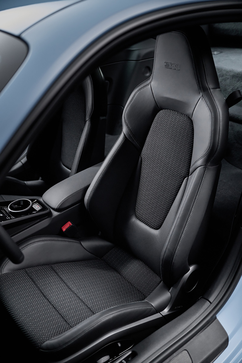 在車艙內同樣強調車輛的運動性格,標配四向電動調整跑車升級座椅,霧面黑飾板鑲嵌高亮澤黑色裝飾,想尋求更高獨特性的客戶可選購 Carrera T 專屬內裝套件,包含有板岩灰或鬣蜥綠的安全帶配色,以及相同色調的內裝車縫線、頭枕上的911廠徽及座椅中央的條紋,地毯上的廠徽及縫線同樣依循此配色概念作為選配項目。911 Carrera T 還提供了雙前座十八向電動調整跑車升級座椅作為選配,Carrera T專屬內裝套件還提供真皮延伸選配,此套件在車門扶手、中控台、駕駛儀表上緣及車門飾板皆以真皮包覆。