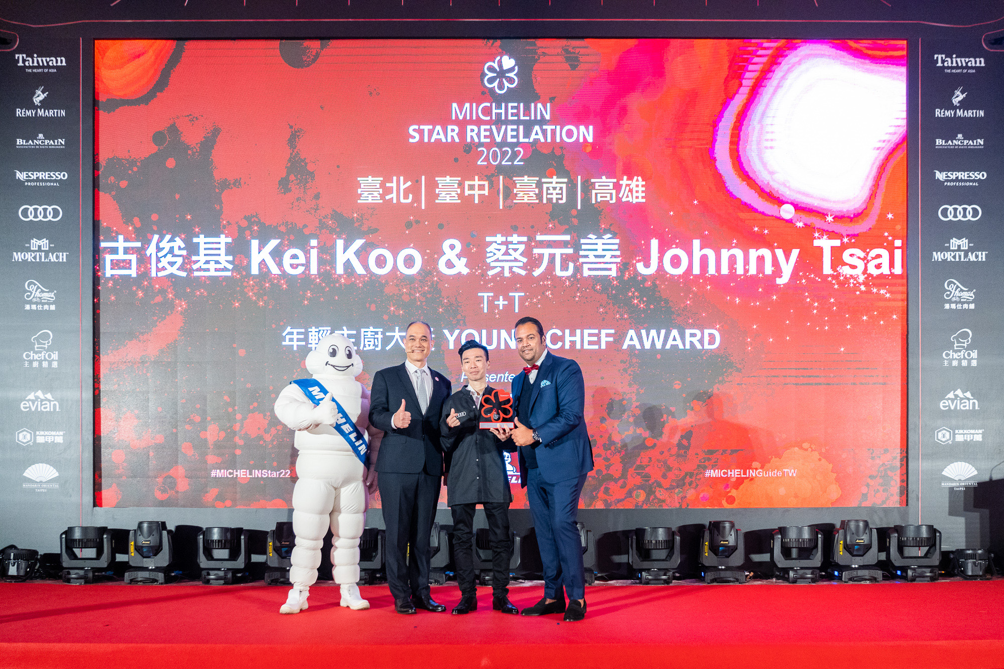 今日《臺北、臺中、臺南 & 高雄米其林指南 2022》主辦單位正式公布今年獲選的摘星名單,而台灣奧迪不僅第三度成為官方首選汽車合作品牌,也再次受邀頒發重點獎項「米其林指南年輕主廚大獎」,今年由位於台北市的「T+T」餐廳,雙主廚 ─ 古俊基與蔡元善獲得殊榮,蔡元善是餐飲學校畢業、古俊基因對餐飲的熱愛而投入料理,兩位主廚均有著堅實的料理背景與經歷,在 T+T,他們發揮創意,將亞洲風味元素融入料理中,展現亞洲的飲食文化與風貌,獲得評審團青睞。而親自出席盛會並代表頒贈今年度「米其林年輕主廚大獎」的台灣奧迪總裁安薩瑞(Rahil Ansari)表示:「我很榮幸能夠參與今年度的頒獎活動,同時代表台灣奧迪頒發這個極具意義的獎項,首先非常恭喜今天獲獎的主廚們,在此我想要向所有得獎者、摘星餐廳與持續努力追求創新的團隊,致上最誠摯的敬意。作為《臺北、臺中、臺南 & 高雄米其林指南 2022》的官方汽車合作夥伴,透過各位所展現出對於美食的創新與熱情,讓Audi 和米其林所共同具備的相似願景和價值觀,激盪出強而有力的連結;兩個品牌同樣高度重視創新與顧客體驗,並支持與鼓勵年輕世代自身所專精的領域表現出卓越熱情。