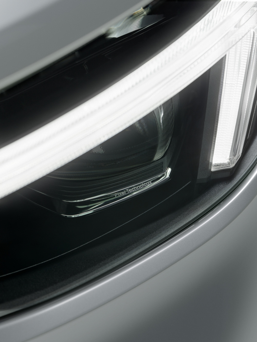 全新改款登台的 XC40 Recharge 在外型上針對電動車進行細部升級。首先是水箱護罩飾板因應電動車需要的整流設計而加以調整,改以無邊框樣式帶來更佳的空力效應,一體式概念與全新頭燈造型內的雷神之鎚設計相互暉映,讓 XC40 Recharge 擁有更加動感洗鍊的視覺效果。而前後配置的輪胎設定更在全新 19 吋 5 幅雙肋黑鑽石切割鋁圈襯托下,為 XC40 Recharge 的運動氣息帶來全新演繹。此外,XC40 Recharge Twin Motor 車款更搭載 Pixel Technology 高階像素式頭燈,每個大燈包含 84 顆獨立像素 LED 照明模塊,可提供智能遠光、主動轉向、智能燈光展演與轉向輔助角落照明等機能,為您照亮每一吋安全回家的路。
