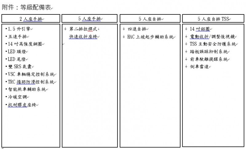 註3:最高載重量830公斤係指5人座手排等級,由國瑞汽車股份有限公司測試取得,數值為標準值,未含容許公差。