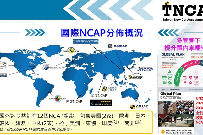 車安中心指出,聯合國在去(110)年10月宣布2021-2030年道路安全行動計畫,總體目標是減少道路交通死傷人數至少50%,其中具體行動第三支柱為提升車輛安全,鼓勵各國家地區推動新車安全評等制度,提供民眾新車安全資訊及引導車廠開發更具安全性的車輛,最終達到提升車輛安全與降低道安事故傷亡的目標。接軌國際、提升國內車輛使用安全與改善道路環境,一直以來是交通部重要施政的方向,車安中心是交通部督管之財團法人,將扮演好重要的專業幕僚機構角色,積極協助交通部推動及完善國內車輛安全管理制度。