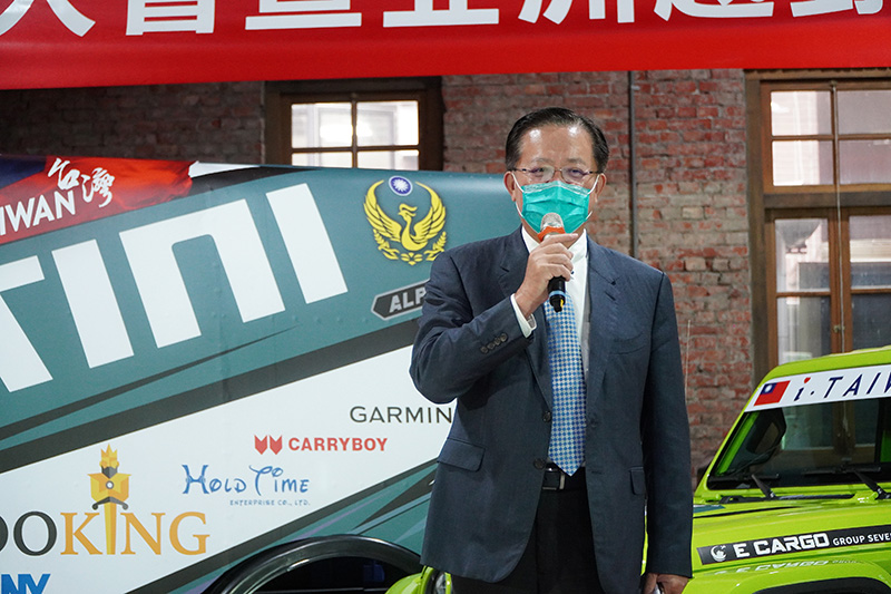 消防署長蕭煥章(左三)與前國際奧會委員吳經國(右四)一同授旗給iTaiwan Rally Team兩位車手陳和皇與陳怡文父女檔,預祝旗開得勝。 首先,陳和皇先生組成「iTaiwan Rally Team」,將於2022 年 11 ⽉ 21 ⽇⾄ 26 ⽇前往泰國及柬埔寨,參加FIA 認證之亞洲國際越野拉⼒賽事第⼆⼗七屆亞洲越野拉⼒賽〈Asia Cross Country Rally);2022年亞洲越野拉⼒賽(Asia Cross Country Rally) ,將於2022年11月21日在武里南省 Chang Arena 體育場前舉行賽車發表儀式展開賽事,共有包含:日本、台灣、印度尼西亞、馬來西亞、韓國、柬埔寨、越南、法國、泰國等8個國家,共50餘輛汽車參賽,今年陳和皇先生也首度以FUSO堅達商用車進行改裝參賽,本屆賽事終點為柬埔寨暹粒,總距離超過 1,500 公里,陳和皇也期待以自身豐富的經驗來為中華安駕學會帶回最寶貴的實戰訓練課程,同時為台灣爭取國際能⾒度與國際⾞⼿交流。