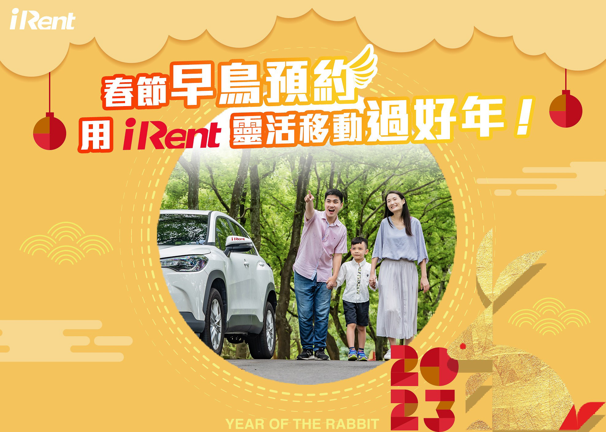 迎接旅遊業強勢回歸的2023金兔年,為滿足民眾春節期間返鄉、歡聚出遊的各式用車需求,和雲行動服務公司宣布即日起(11/1)「 iRent同站租還」、「和運租車門市」同步開放春節5日以上早鳥預約,並祭出多項超值優惠!鼓勵民眾在這次長達10天的年假可多加利用,無論拜年或走春,iRent及和運租車皆可滿足各種過年用車需求!