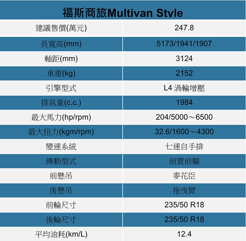 Multivan Style配備235/50 R18圈胎。
