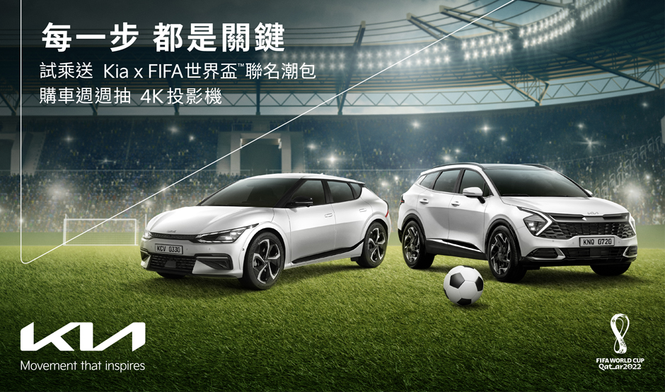 搭配 2022 FIFA 世界盃™ 即將開打的賽事熱潮,Kia 總代理台灣森那美起亞特別推出「每一步 都是關鍵」冬季活動,即日起至 12 月 31 日至全台 Kia 展示中心,凡預約來店試乘 Kia 任一乘用車款,追蹤「Kia Taiwan 台灣森那美起亞」Facebook 官方粉絲團、拍照打卡分享至個人臉書,即可獲得「Kia x FIFA 世界盃™ 限量聯名潮包」乙個(市值 NT$1,000);下訂 Kia 乘用車任一車款,有機會獲得「Acer ApexVision L812 4K 超短焦雷射智慧投影機」 (市值 NT$79,990)。Kia 總代理台灣森那美起亞將於 2022 年 11 月 15 日至 2023 年 1 月 3 日每週二週週抽出幸運兒,當週沒中獎者,還可保留抽獎資格,持續到活動結束,得獎名單將會在 Kia 官方網站之最新消息區公佈。