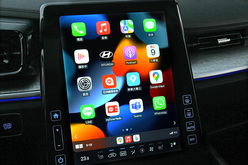 所有功能都整合至10.4吋中控螢幕,也有支援Apple CarPlay與Android Auto(2023年開通)連接。