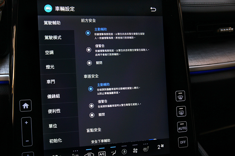 標配全速域車距維持、全速域車道偏移輔助、前車駛離提醒、盲區碰撞避免輔助、前方主動煞停輔助(含汽車/行人/騎士偵測)。