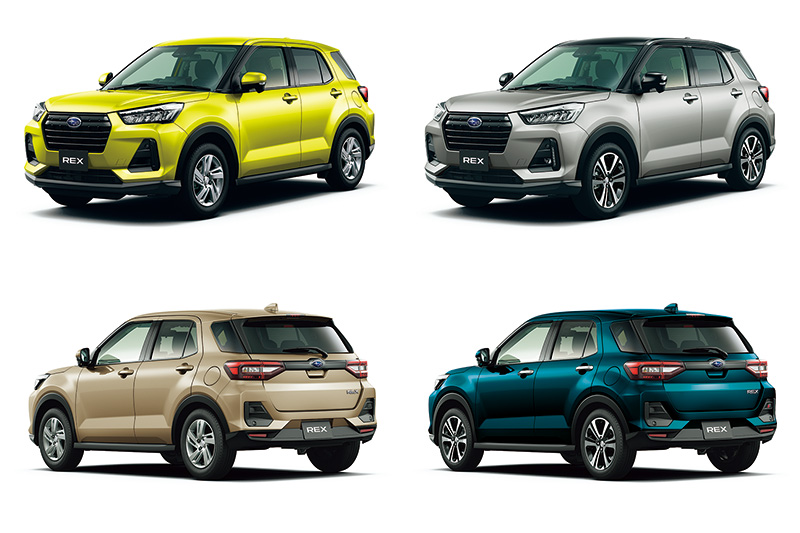 其實REX就是Toyota Raize、Daihatsu Rocky的同生車款,在日本這樣的跨品牌同生車十分常見;所以REX基本機械結構與上述兩款車相同,外觀則是換上了有如Forester、較粗獷的造型,大面積地六角形水箱護罩,搭配銳利的兩側線條,增加了霸氣感,車身下元也配有黑色塑料防刮護板,也增加了些許越野風,車尾也同樣有著立體感強烈地多銳角設計,與車頭造型相互呼應。REX共提供〝G〞與〝Z〞兩個等級規格,基本提供七種基本車色,高規的〝Z〞等級車型則再增加兩種雙采車色可選擇。