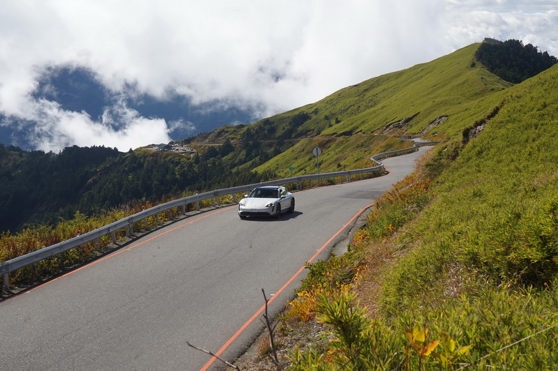 若後排座椅全部放倒,最大1,212公升的置物容積擺放長型物品及大型裝備也不成問題 武嶺亭是到清境不能錯過的拍照打卡景點之一,在2019年更獲得「國際暗空協會(IDA)」認證成為國際級的觀星場域,這次試駕的Taycan 4S Cross Turismo選配有全景式玻璃天窗,在無光害的環境中免下車便能欣賞到漫天星斗也是蠻浪漫的,只不過到訪的這幾天晚上天公不作美下起雨來以致無法前往觀星,也替這次的行程規劃留下小小遺憾,不過仍趁著早上遊客尚未上山前抓緊時間前往武嶺亭拍照打卡,過往開燃油車上武嶺總會感受到高海拔含氧量不足動力流失的現象,這次開電動車上來完全沒有這個問題,不必燒燃料的電動車在各種環境下皆能保有穩定的性能輸出,而且高山氣溫也沒想像中的低,約莫13-15度的氣溫對電池續航力還不足以構成影響,更何況Taycan還配置有聰明的熱管理系統,氣溫偏低時會對電池模組加熱縮短充電時間維持應有的續航里程。