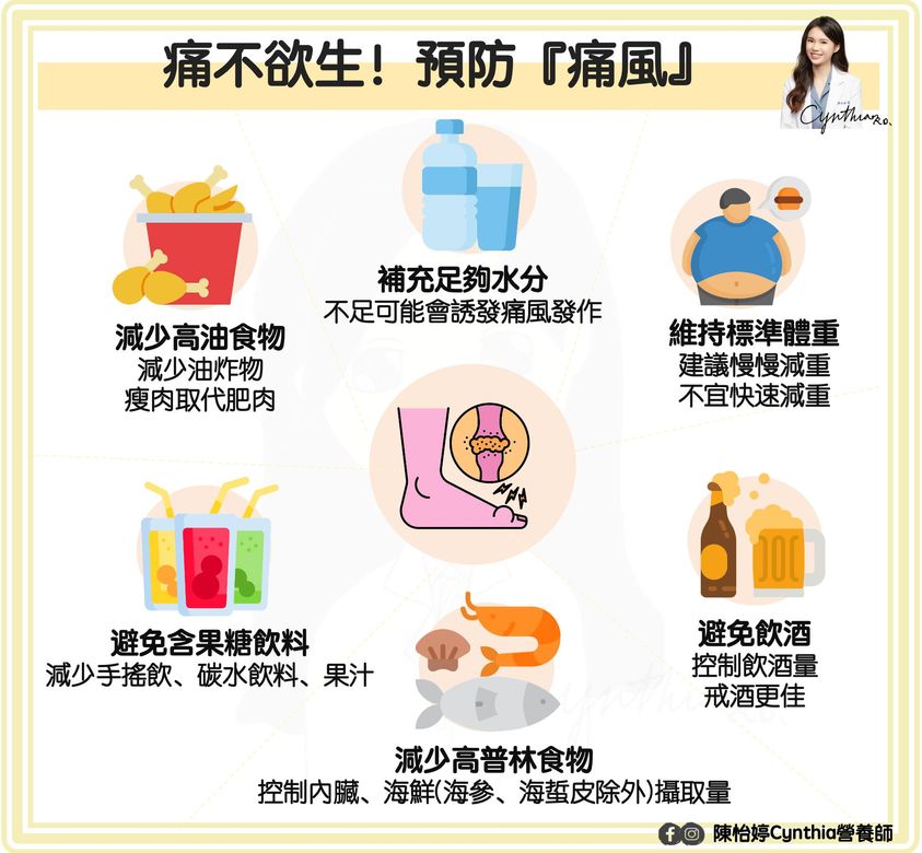 陳怡婷曾在門診遇見痛風的病人說:「痛風痛起來痛不欲生!很多東西都不太敢吃!飲食要注意什麼?」