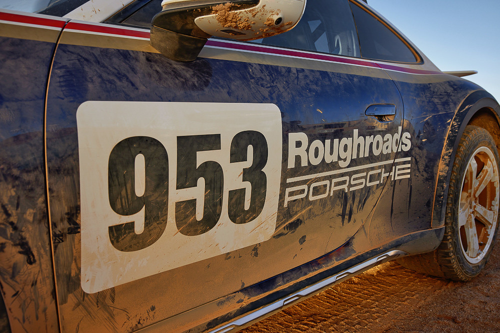 來自Porsche Exclusive Manufaktur選配項目的拉力賽設計套件核心為白色搭配金屬龍膽藍色的雙色塗裝,這是保時捷首次結合雙色調塗裝與裝飾彩貼在量產車型。客戶在車側可選擇貼上獨特的 0 至 999 號賽車編號,除了紅色與金色的拉力賽車條紋外,選配拉力賽設計套件的 911 Dakar,由於以 1984 年達卡拉力賽冠軍賽車的外觀作為基底,在車門上印有「Roughroads」字樣,這是一個展現 911 Dakar 車型的獨有概念以及為越野而生的強大性能的註冊商標。再加上輪圈施以白色烤漆以及紅色光條尾燈,營造出與標準版車型更加獨特的外觀造型。內裝還有更多亮點特色,包含 Race-Tex 與真皮延伸包覆以及青鯊藍色的安全帶與其它元件。