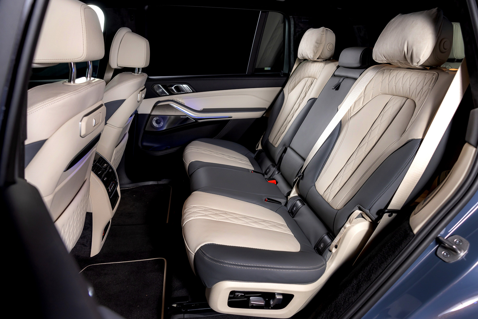 立足於領航世代前進的頂尖科技,全新BMW X7為眾人獻上宛如頭等艙級的愜意空間,透過長達3,105mm的軸距表現,提供七人乘坐的寬敞舒適空間,第二排座椅具備電動椅背可調與最高可達14.5cm的電動前後滑移功能,在後排座椅全數傾倒的狀態下能創造出高達2,120L的行李廂空間,偕同全景式電動玻璃天窗、旅行便利套件、上下對開電動尾門啟閉系統、車門自動緊閉系統,不僅為全新X7舖陳出舒適寬敞的座艙布局,最大輸出可達1,475瓦且擁有20具揚聲器的Bowers & Wilkins鑽石高傳真音響系統與可讓第二排與第三排車室獨立調整座艙溫度的豪華型五區恆溫空調,更讓X7的全車乘員都能享受絕佳的音樂饗宴、自由選擇最舒適的座艙溫度。全新BMW X7透過諸多細節堆疊出座艙的細膩與溫度,導入可提供最多15種色彩選擇的全新X7專屬環艙氣氛燈、BMW Individual Fine-Wood淺色梣木紋飾板、BMW Individual Merino頂級真皮材質、雙前座舒適型電動座椅含記憶功能、跑車多功能真皮方向盤(含換檔撥片)、頂級水晶中控套件與全新設計的排檔操作介面,大幅釋放了座艙內中央鞍座區域的空間,並為全新BMW X7帶來尊爵不凡的層峰細膩質感。
