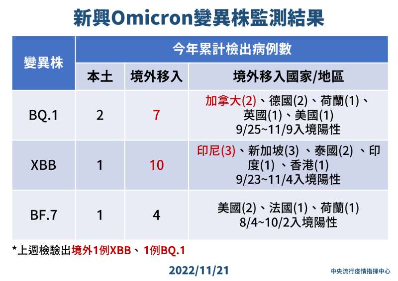 此外根據上一周變異株監測統計,81例本土定序中,有80例為BA.5,1例為BA.2,沒有新驗出本土的BQ.1或XBB新興變異株病例,目前本土還是以BA.5為主流變異株。