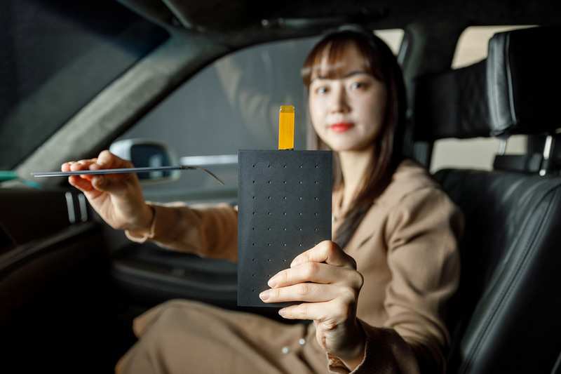 不同於現行採錐形設計的揚聲器,LG所開發的最新揚聲器尺寸大小僅和護照一樣,不僅如此厚度更只有2.5mm,重量也僅不到40g。受惠於薄型設計,該款揚聲器可安置於儀錶板、車頂、頭枕等各種地方,如此一來就能創造更出色的音場,同時也能減少重量的負擔。