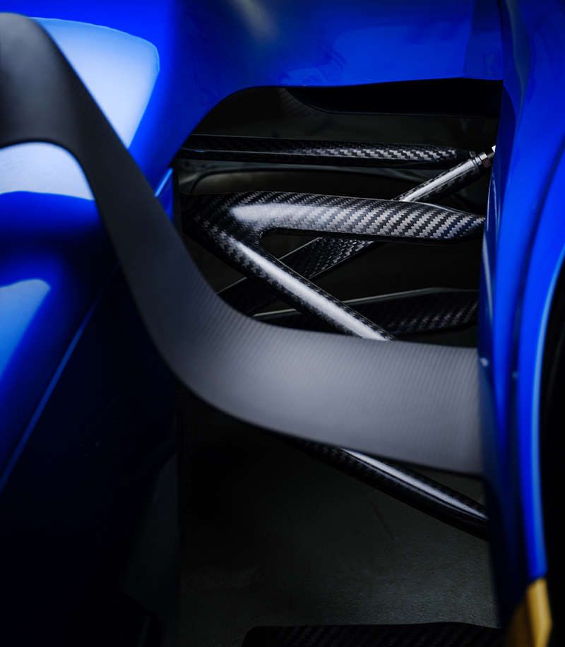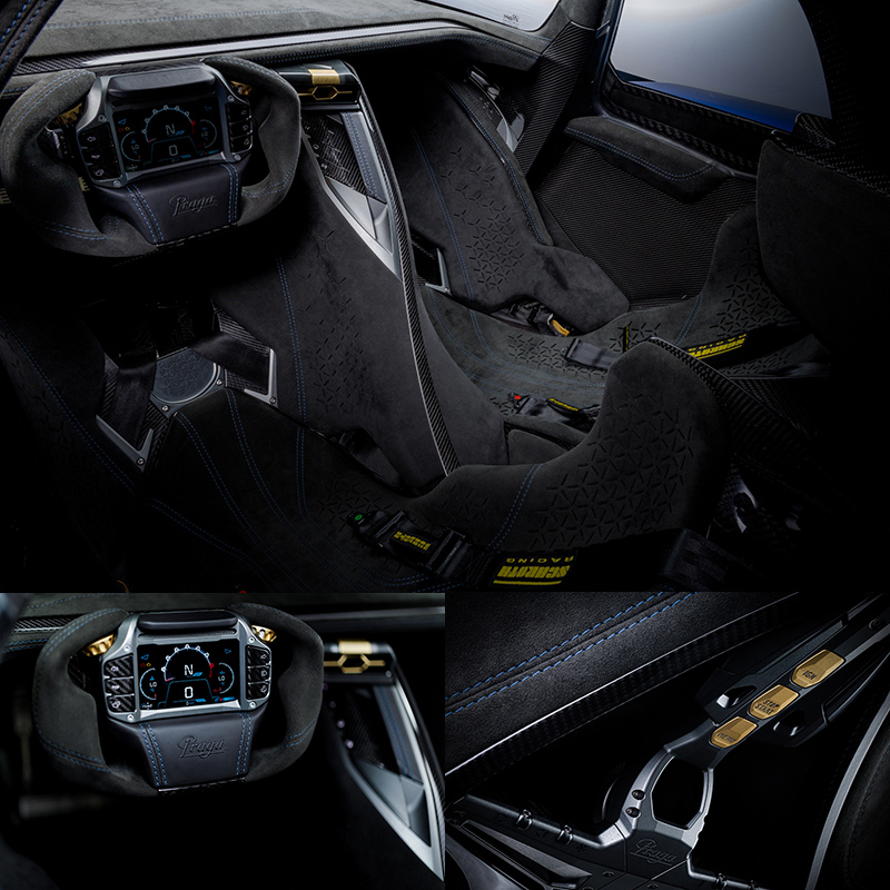 同時為兼具輕量化,座艙共使用了56個獨立的碳纖維部件,並以高品質的 Alcantara 和皮革包覆,讓駕駛艙目標重量僅34kg,除此之外,全車還大量使用碳纖維、鎂合金與汰金屬等材質,讓他乾重得以壓在1,000kg以內。