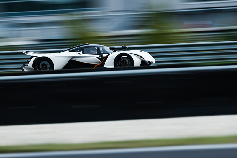 Praga強調Bohema是一輛可以自側行李廂〈容量50L〉內取出安全帽,配上Pirelli Trofeo R跑胎下賽道奔馳後,在舒服返家的超跑。