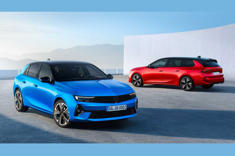 Opel Astra純電版本將會有五門掀背與旅行車兩種款式,因同樣採用油電共用的EMP2平台所打造,因此外觀上與燃油版並無太大不同,動力輸出採用的是具備156匹馬力及270 Nm扭力峰值的電動馬達搭配54 kWh的電池模組,性能表現上也比起同級的最高極速更高些來到170 km/h,依WLTP的測試標準其續航里程約莫在400公里,同時在100 kW高壓充電的支援下可在半小時內將電力從20%補充至80%。