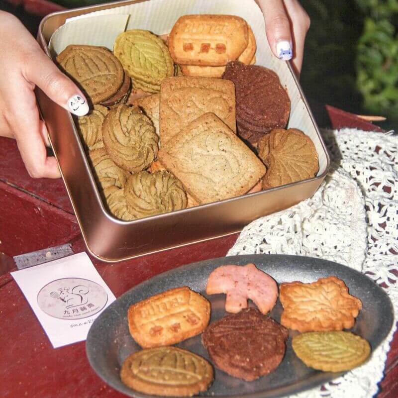 一盒充滿靈魂的鐵盒手工餅乾,絕對少不了那精緻亮眼的外型和薰陶迷人的香氣,來自彰化的「九月蒔雨菓子手作」便充分的把所有真心毫不保留的用進了每一個親自操刀的寶盒之中!九種不同的口味以及造型,不只滿足顧客的味蕾和視覺,也同時讓心中無不充滿溫情~