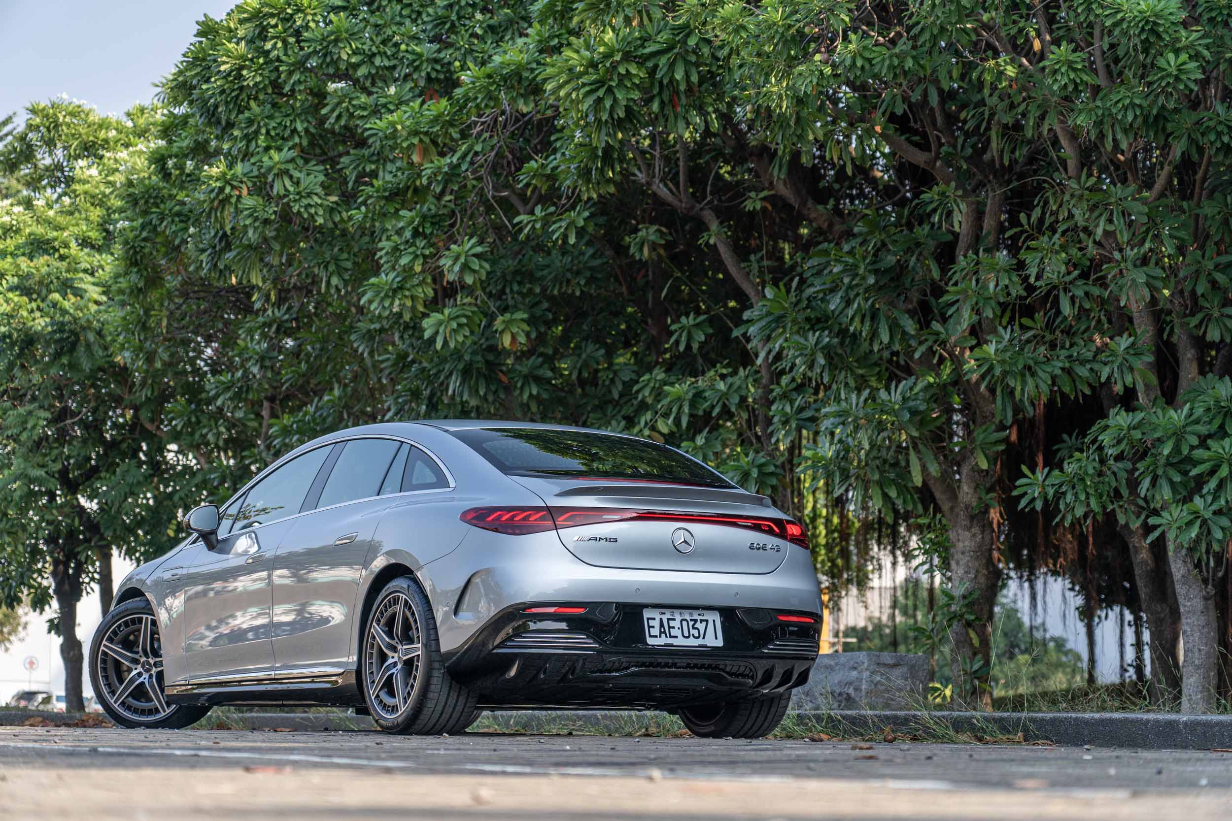 後輪轉向系統給了 EQE 更有感的操駕靈活性。 讓人在意的反而是懸吊系統針對路面資訊過濾後所傳遞給駕駛者的感受,因應 EQE 43 4MATIC 供應 Slippery、Comfort、Sport、Sport+、以及 Individual 等不同駕駛模式,各層級不只會針對動力輸出與排氣聲浪做出調整,連同車輛懸吊也會同步進行軟硬調整。在約莫一天的體驗過程中,我刻意針對 Comfort 與 Sport+ 兩個極端模式進行體驗,前者依舊提供深具韌性且沈穩的「賓士」傳統體感,反倒是 Sport+ 的設置搭配後軸轉向系統,在快速過彎時很是暢快,抑制側傾與攻彎靈活程度就貌似這套電腦與硬體完全無視這超過 2,500 公斤的空車重量,所以你問我這輛純電性能跑房夠不夠格被冠以 AMG 名號,答案絕對是肯定的。