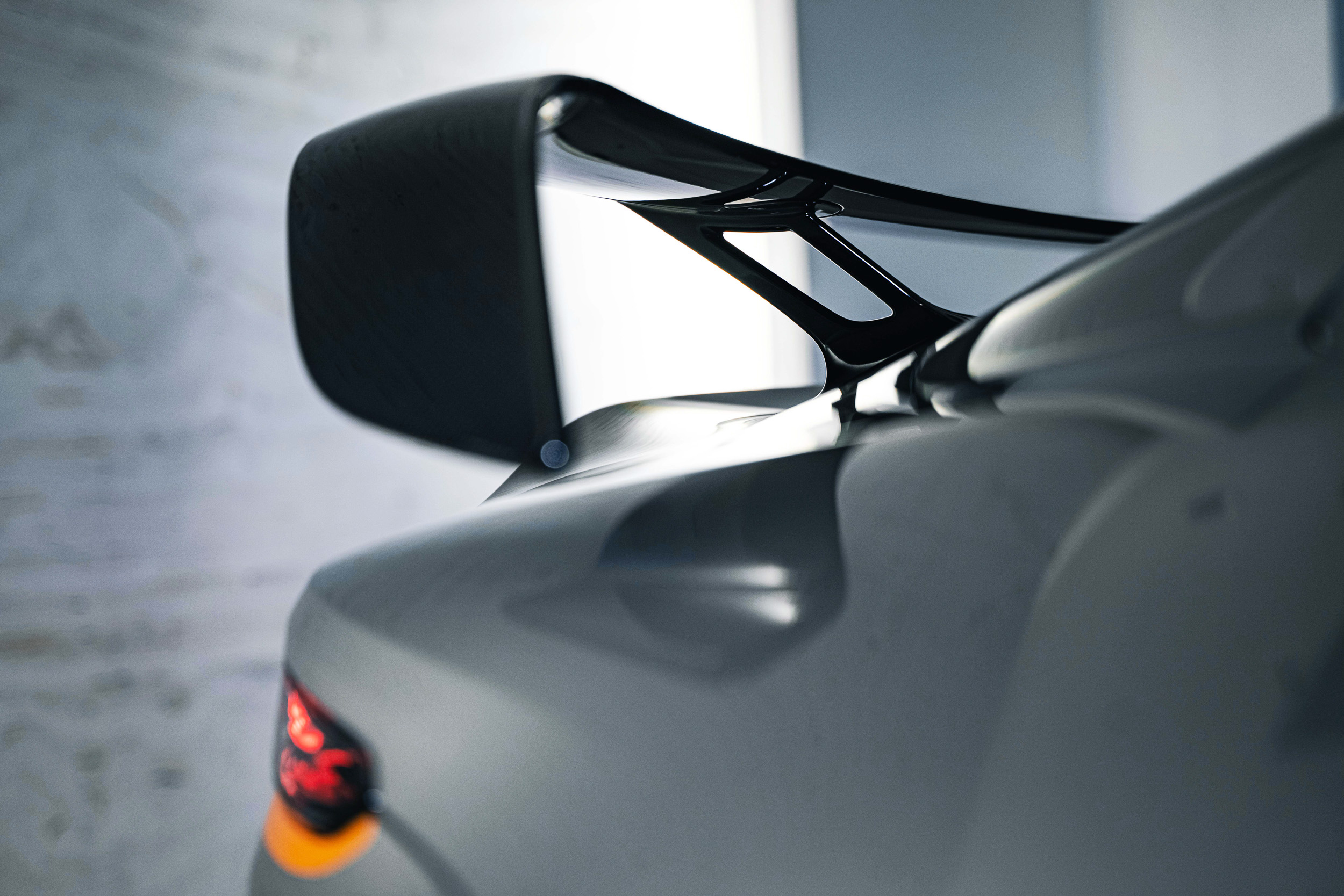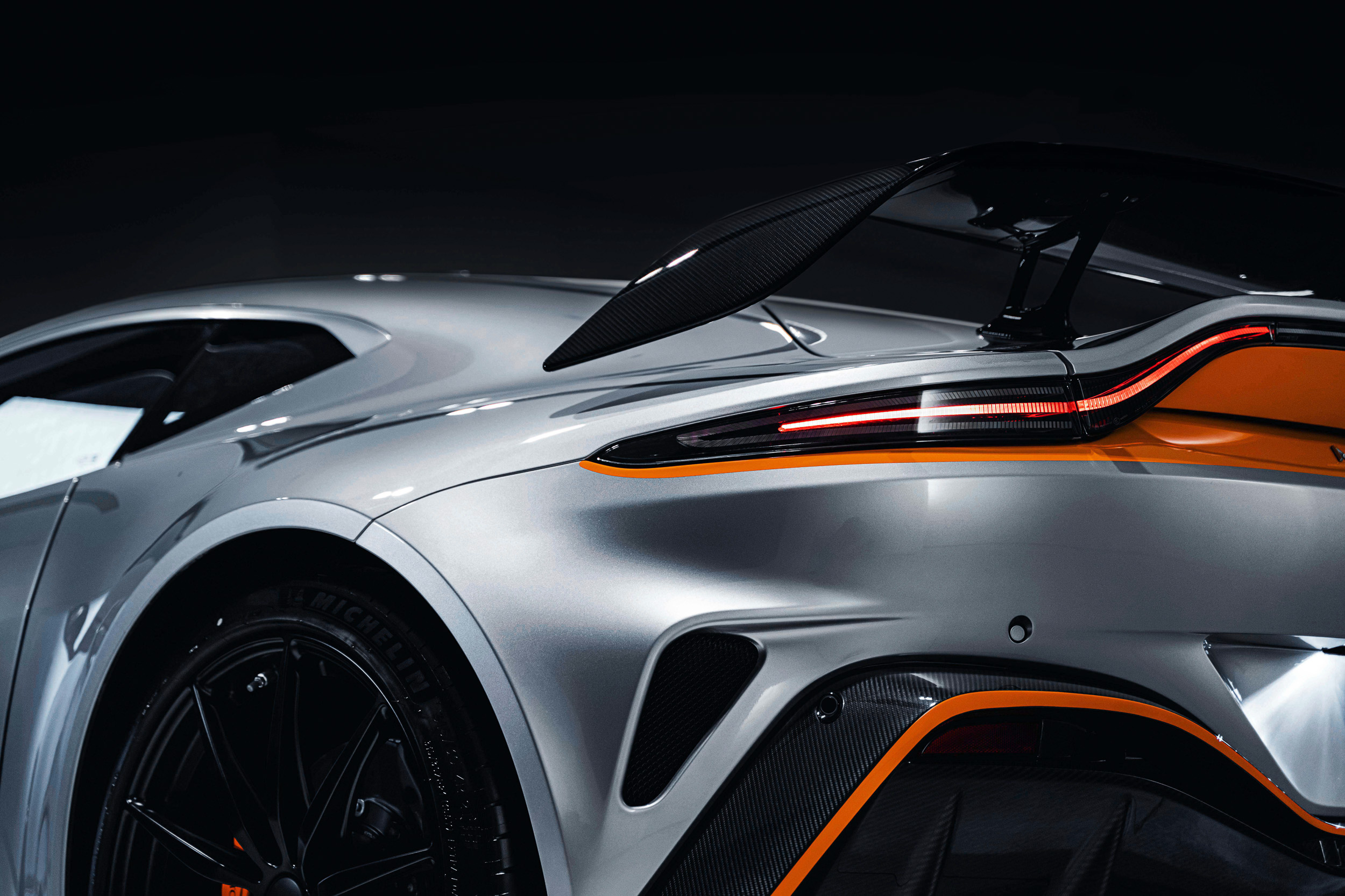 車尾採用全新後保桿與分流器設計,保持空氣力學的完美平衡。新設計的核心主角來自輕量化的雙尾管排氣系統;身為視覺焦點的尾翼設計,可提供高速行駛下 204KG的最大下壓力,並讓整體外觀更顯張狂有力,完美發揮V12 Vantage優異空氣力學所提供的高速穩定性與終極性能。