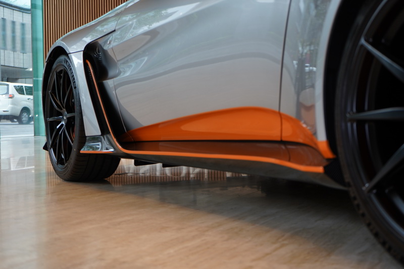 為了增加通過引擎冷卻散熱的氣流,特殊的馬蹄型引擎蓋進氣口設計,搭配水箱護罩格柵面積增大25%,有效增強冷卻效果,與Vantage GT12 華麗外型相互呼應,並致敬Aston Martin 傳奇車款V12 Vantage GT3賽車。競速氣息濃厚的外觀設計源於賽車運動的啟發,亮眼的跑格造型也在車側線條嶄露無遺,展現過往V12 Vantage 車型的傳承元素。