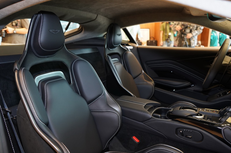 內裝方面,V12 Vantage 保留Vantage車款的經典樣貌標配頂級真皮的 Sports Plus 座椅,並鑲有品牌飛翼徽飾與網孔造型。車主亦可選配全新碳纖維高性能跑車座椅,配備六向調節功能,提供更佳的座椅支撐性。此款跑車座椅為Aston Martin受賽車運動啟發而打造的專利之作,在不影響乘坐舒適性的前提下,可減輕 7.3 公斤座椅重量。