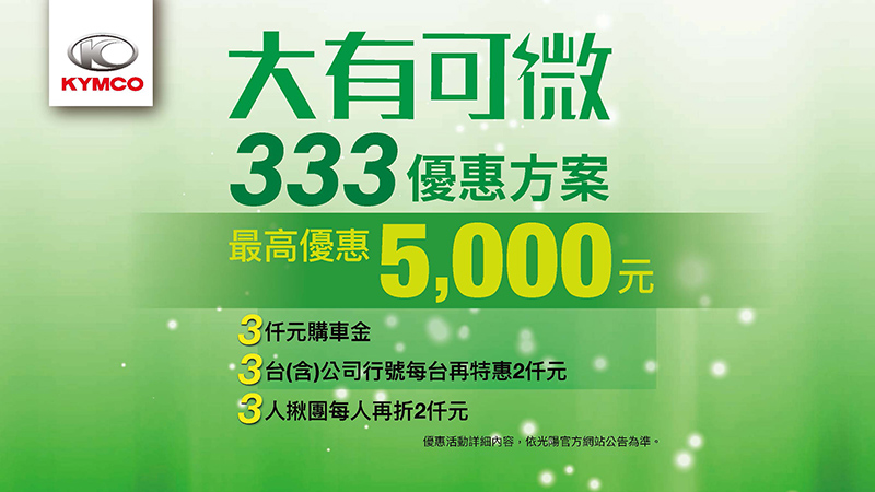 「庶民最愛」微型電動二輪車 「大有可微 333優惠方案」購車最高可省5,000元!