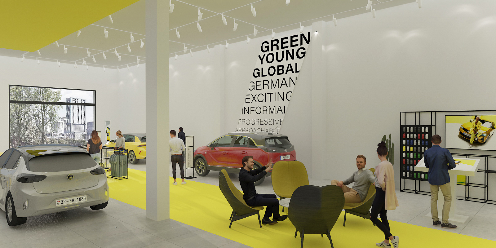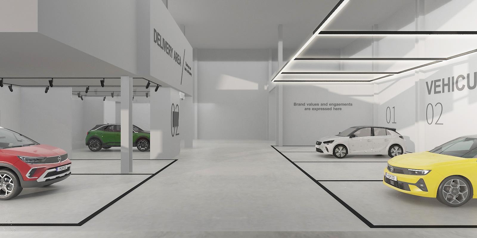 OPEL汽車遵循全新品牌識別規範打造全新旗艦展示暨服務中心,徹底提升軟硬體服務,運用深灰金屬色大面積的鋁複合板,搭配巧妙羅紋的覆層材料,與OPEL標誌的亮眼檸檬黃,形成完美對比,讓人一眼就能留下深刻印象。伴隨著全新的“閃電”設計、新款OPEL字體和發光斜條的重大革新,強調新世代OPEL品牌亟欲傳遞的大膽、純粹、充滿活力的“新世代德國”體驗。