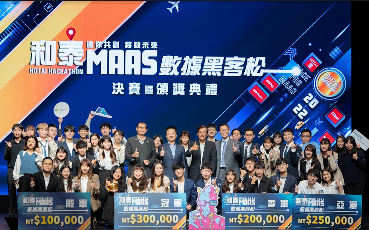 和泰集團近年來積極推展MaaS (Mobility as a Service)相關服務與文化,期望能完美滿足每一位顧客在「移動過程」中的各種需求,今年更首次舉辦「和泰MaaS數據黑客松」競賽,以「結合智慧科技與共享經濟」為主軸,鼓勵全台青年學子,運用和泰釋出的70萬筆珍貴商業數據,搭配AI、雲端應用等科技,分享心中移動願景。歷經近半年賽程,最終由10組頂尖隊伍自183組中脫穎而出,12月17日舉辦決賽暨頒獎典禮,十強菁英團隊齊聚三創生活園區,為實現稱霸全國的夢想全力奮戰。最終由「咕嚕小隊」的「DTD 共享計程車」問鼎冠軍寶座,抱回30萬獎金、隱藏版專屬NFT及獎盃。
