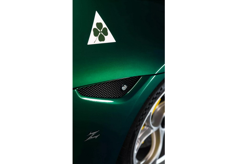 最近Zagato的官方IG公布一系列採綠色塗裝Alfa Romeo Giulia的照片,雖然還看不到全車樣貌,不過照片內的文字卻透露出一些端倪,首先這部車體經過修改的Giulia在名稱前面多了SWB的稱號,意味著軸距將比現行車款再更為短捷,外觀上除了增加許多碳纖維導流板與空力套件外,在前輪拱處設計有蜂巢狀的通風網,讓人想起8C Competizione的經典設計,另外車尾的一體式LED尾燈同樣易與1960年代的Giulia TZ產生連結。