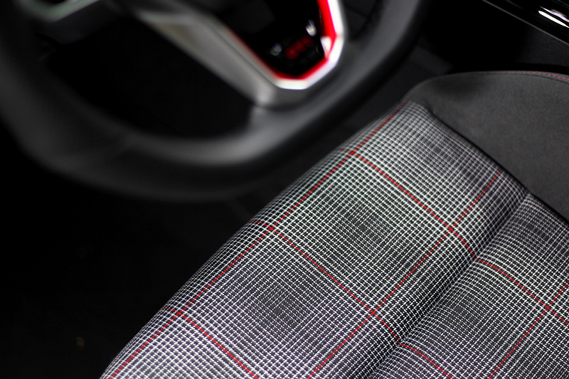 Golf GTI經典駕馭版配備經典格紋跑車座椅,與Golf GTI相比缺少多向電動調整與記憶和加熱通風功能。