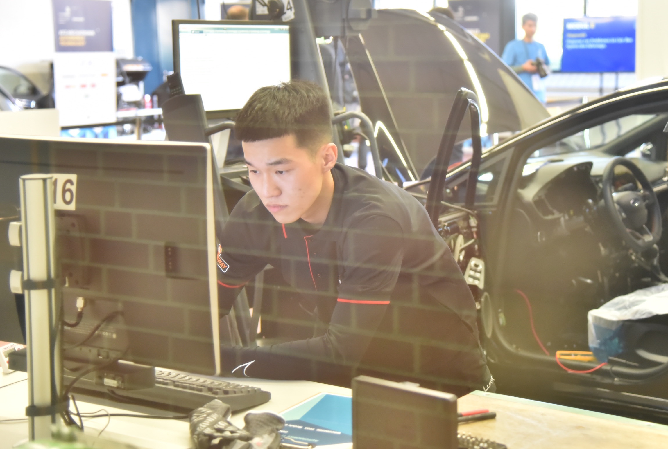 奪金國手詹許堃同學表示:「比賽中選手要在限時內找出解決車輛問題的方法,需要專業的知識與技術,就像是汽車的醫生,需要透過全面系統性的思考、運用邏輯逐一排除故障。特別感謝賽前福特六和提供軟硬體資源及師資協助,讓我有機會充分自由的練習,在面對各國好手時可以穩定發揮。」