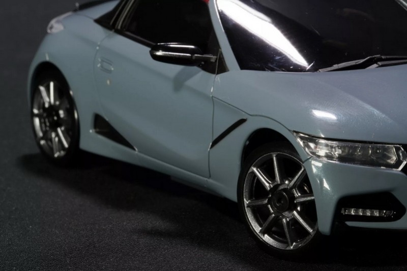 這款Honda與Kyosho公司合作的S660遙控車的車身尺寸為142.5× 67×51.7mm,與實車相比大約是1:27的比例,車身顏色提供有Sonic Gray Pearl或Premium Star White Pearl兩款,車頂皆採用紅色配色並搭配八幅式輪圈造型,車體下是採用Mini-Z AWD的底盤系統,因此玩家可享受一定程度的漂移控制,另外在盒內還會附上一組車輪板手及齒輪拆卸工具,以便玩家更換甩尾專用胎或是對車輛進行改裝保養。