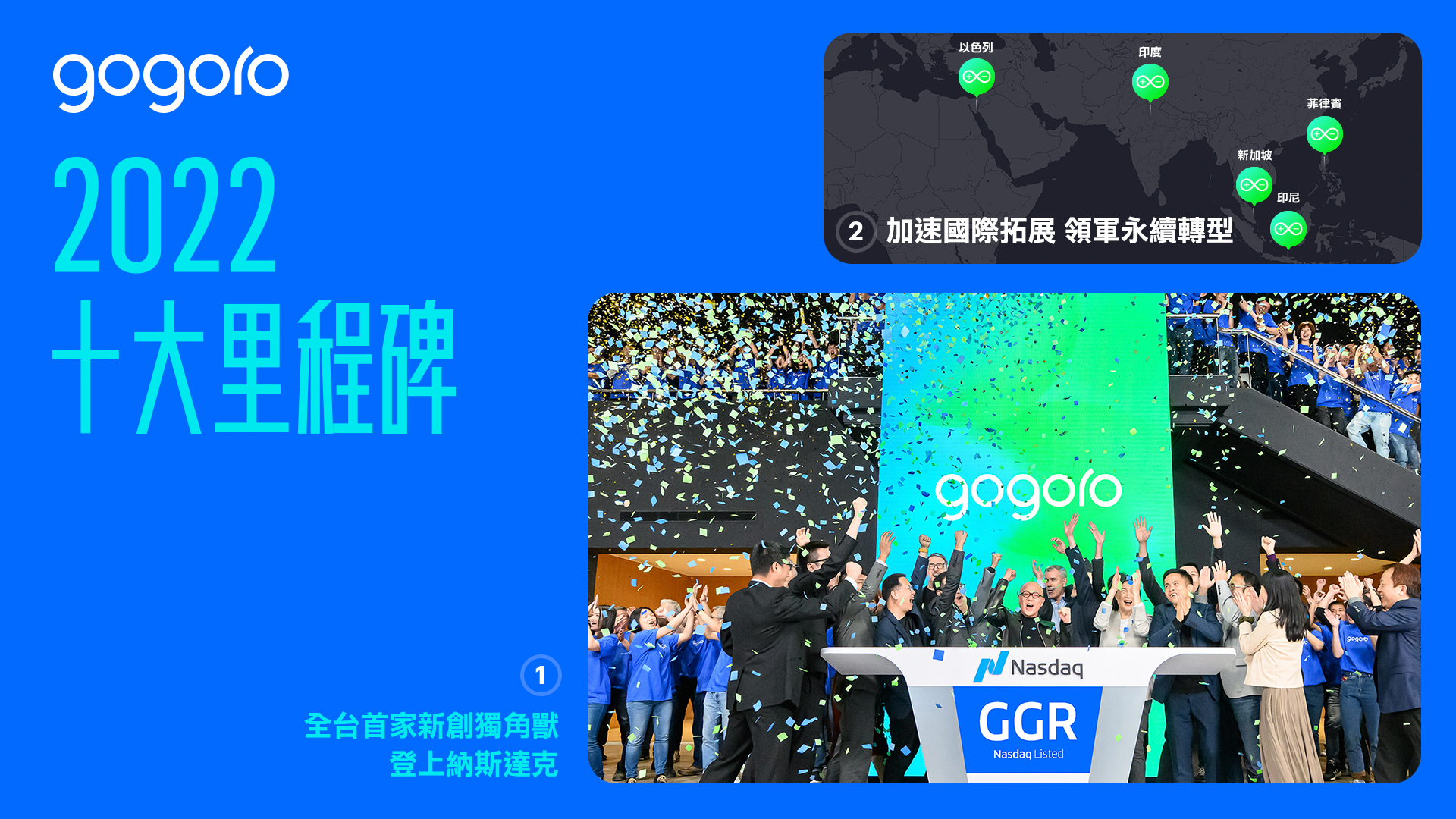 Gogoro 在台創立十年有成,2022年成為首家台灣新創公司於美國成功上市的獨角獸,更是睽違 17 年,再次登上美國納斯達克 (Nasdaq) 交易所的台灣科技品牌。