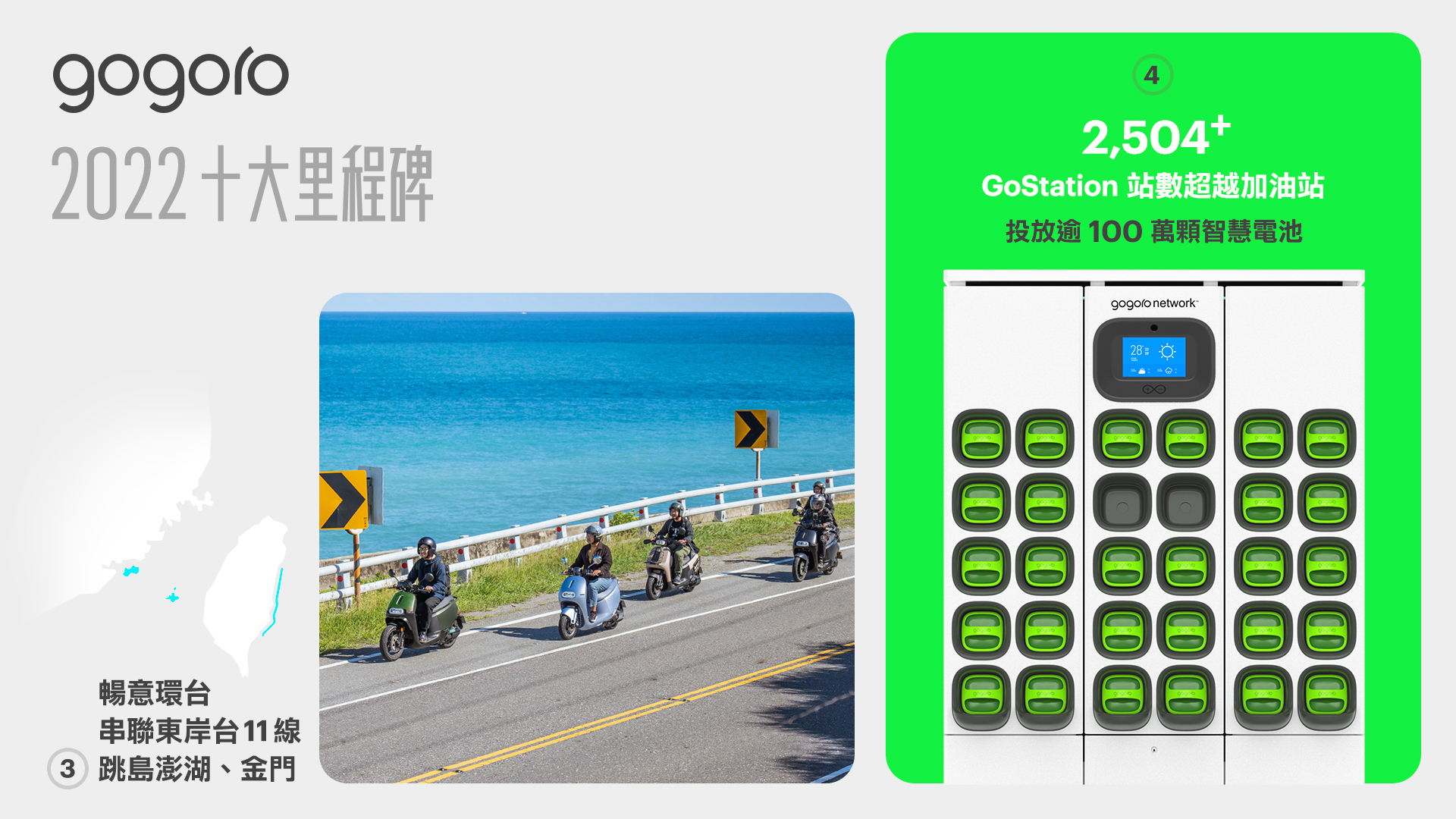- 超過 12,231 個 GoStation 機櫃、電池槽數逾 106,000 個。