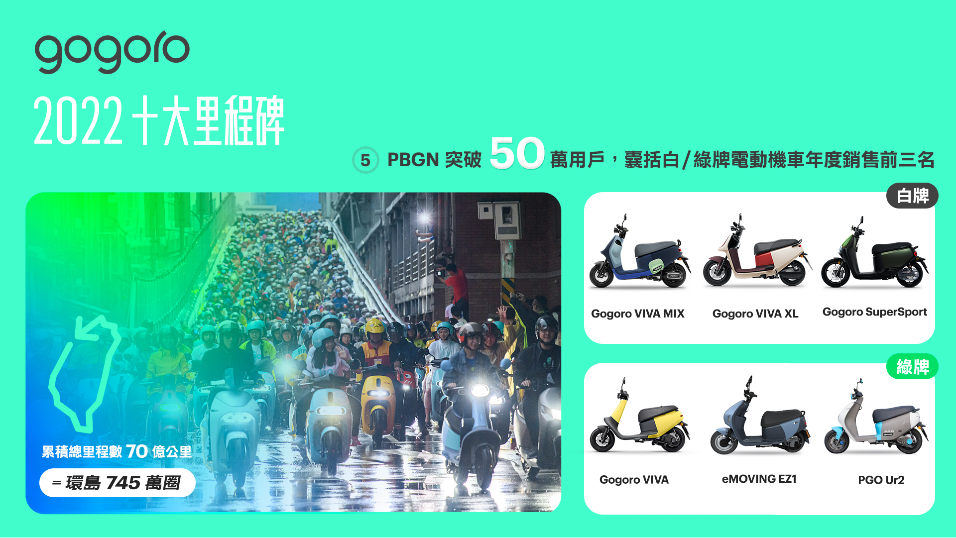 2022 年電動機車市場銷售逆勢成長、奪下近 12% 市佔;PBGN 蟬聯年度電動機車銷售冠亞軍,更包攬白牌與綠牌車款銷量前三名: