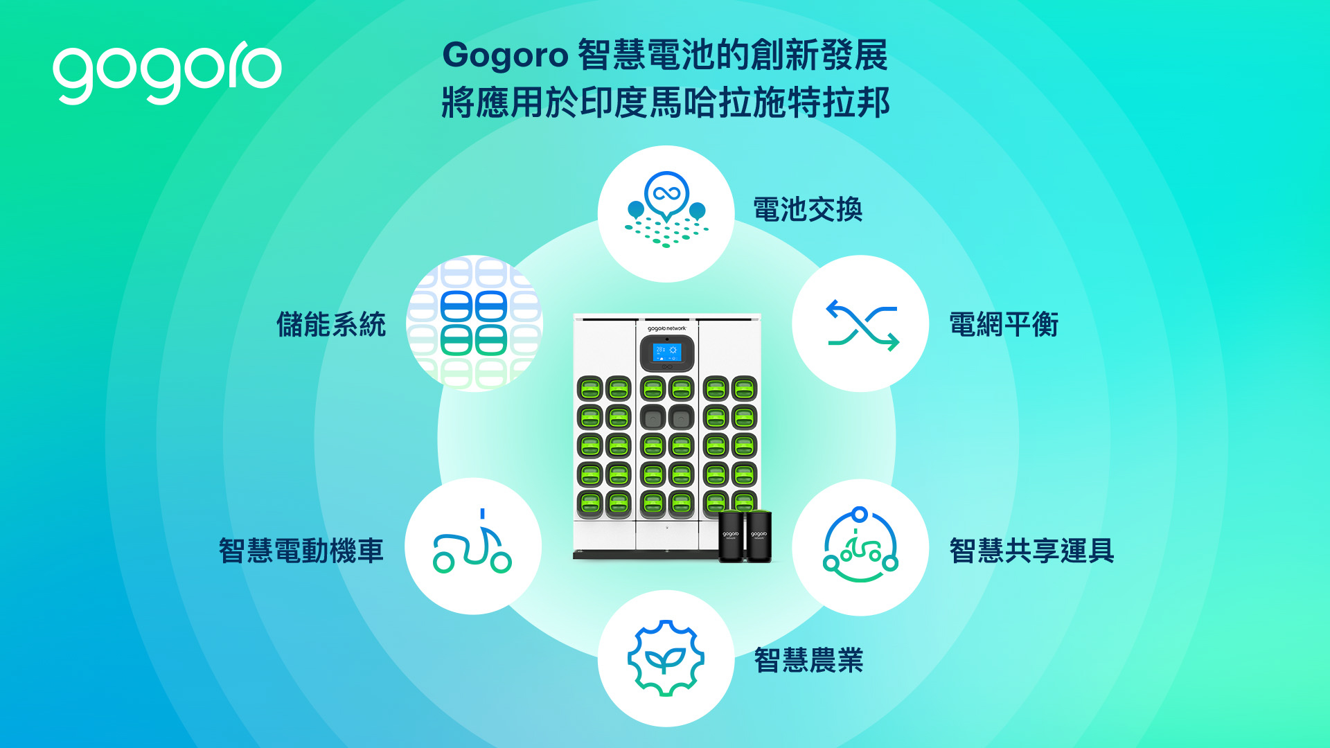 馬哈拉斯特拉邦的電池交換基礎設施預期將於今年開始佈建,將導入完整的 Gogoro 智慧能源生態系,包含電池交換站、電池交換技術、能源管理解決方案,並提供多元創新應用,投入於智慧城市規劃、儲能系統、移動共享服務、智慧電動機車、電網需量反應、分散式儲能、智慧農業等領域。
