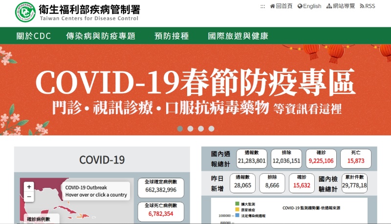 近日國內COVID-19確診人數下降,但疫情還在持續當中。指揮中心為確保確診民眾於農曆春節期間可獲得適當醫療照護,並及時取得口服抗病毒藥物,於疾「衛生福利部疾病管制署全球資訊網」首頁設置「COVID-19春節防疫專區」。