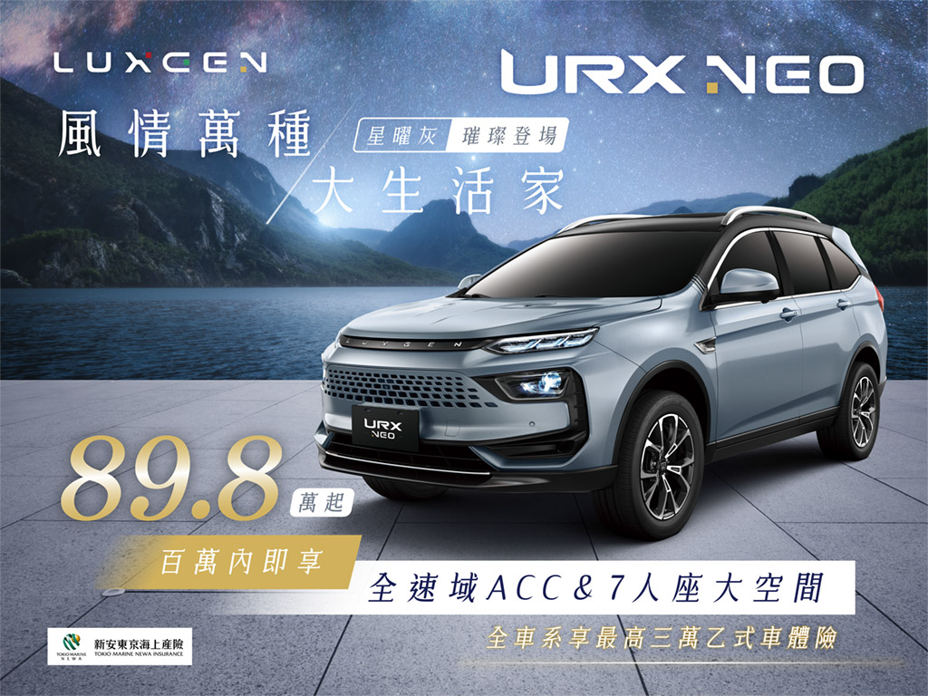 LUXGEN為讓每個家庭都能輕鬆擁有和家人們愜意舒適的車旅生活,全新上市的URX NEO,除提供5/7人座大生活家版車型,以及5+1樂活版外,LUXGEN更為多元車室空間與特定族群,以URX 5+1樂活版為基底延伸而出的「URX NEO 7人樂活版」,不僅是市場上唯一百萬內七人座SUV,更擁有多元彈性大空間與充沛動力,全方位滿足多人用車趨勢、高齡化社會的通用設計理念,致力打造符合全年齡友善產品線,期望讓每位乘員都有自已的專屬座位。而且配合台灣獨特的複雜路況,搭載高科技的安全配備,升級至全新的ADAS先進駕駛輔助系統,涵蓋了AEB自動煞車輔助功能與ACC全速域主動車距巡航功能,不只能低速跟車,還能跟車到停(含STOP & GO),無論是長途旅行或是受困車陣,都能減輕您的駕駛負擔,全新的LUXGEN THINK+ 5.0將AR view 的解析度提升至120萬畫素,並透過兩大主流車載系統手機媒介服務的導入,讓手機連動功能,變得更簡便輕鬆,無論是導航或聽音樂,都能隨插即用,更佳符合現代人的日常使用習慣,打造舒適與科技兼備的智能座駕,讓行車更加安全又輕鬆。