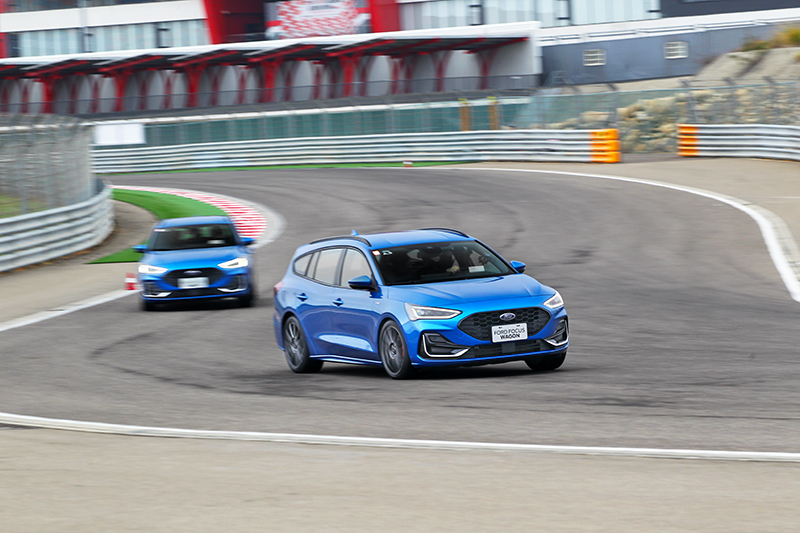 Wagon車型在更容易掌握的高速彎及髮夾彎中簡直是小菜一碟,開起來並不特別察覺與Hatchback車型有太大差異 最後便是大家期待的全賽道關卡,這關是由教練開著前導車引領著大家前進,上車後便將模式切換到賽車模式體驗最直接的動力輸出,雖說Wagon車型在底盤調教與設定上不如Hatchback來的硬派,但在賽道上奔馳後便發覺從底盤傳進車艙的路感回饋相當沉穩,無論是高速彎中的動態或全油門的出彎反應都相當容易預判,即便車速稍高的狀態下入彎有些許推頭現象,此時油門略收方向盤稍微修正後車頭又立即回到正確的行進路線上,重新調校後的懸吊及變速箱設定讓駕駛對於節奏的掌控度更高,不會有底盤或動力配合度銜接不上的斷差感,若不是真的熱血到非ST不買,如此的動力輸出與底盤調教對多數駕駛者而言已相當夠用。