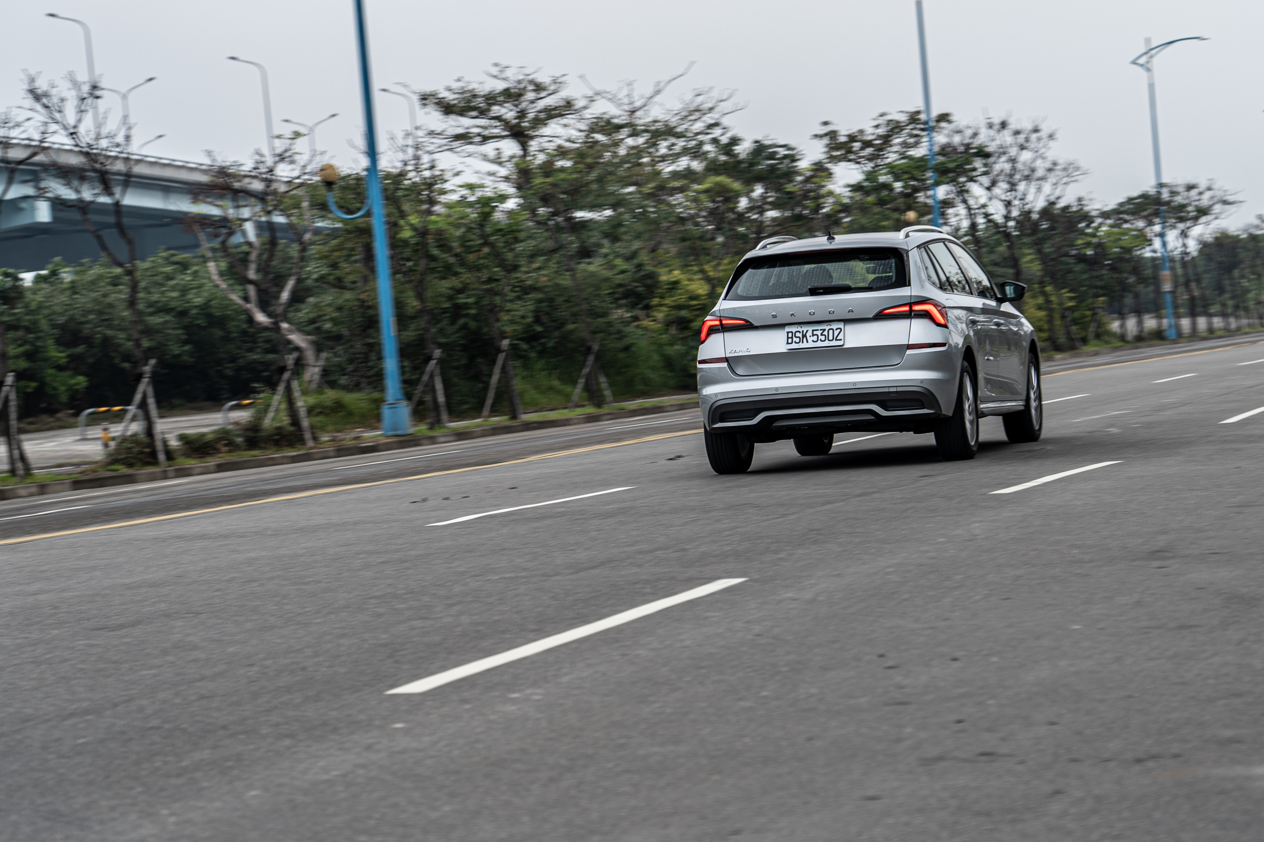 雖然 Kamiq 在車身尺碼方面採長 4,241、寬 1,793、高1,553 mm 的設定,加上 2.651 mm 的軸距對比同級眾多敵手並不算特別突出,但實際乘坐在車內,其實很輕易可以感受到本車在 MQB 模組化平台架構基礎上,有著相當寬裕的空間,甚至本次所試駕的 1.5 豪華菁英版所配置的座椅為黑色 Suedia / 真皮 / 真皮透氣材質混搭設計,舒適性方面著實加了不少分數,難以想像本車是 Škoda 旗下休旅陣列中位居入門的產品。