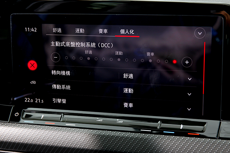 DCC、VDM、扭力分配系統加持,基本上在山路會依腦中路線劃過。 而在這基礎下Golf R特仕車配備的紐柏林賽道模式與漂移模式增添操駕樂趣,其中紐柏林賽道模式別以為是將所有設定調至緊繃,雖動力輸出與變速箱反應會處於積極狀態,但懸吊阻尼則不會是最硬朗設定,似乎還會比賽車模式略軟,使其能讓車輛處於最穩定絕佳狀態,於彎中十足支撐性且同時略帶些韌性反應,帶來神經瘋狂中保有理性穩定的個性。至於漂移模式就是會將循跡關閉並透過扭力分配系統讓車尾蠢蠢欲動不安分,也因如此請體諒我沒有選擇此模式體驗,畢竟我只是試車並不想賀成交。