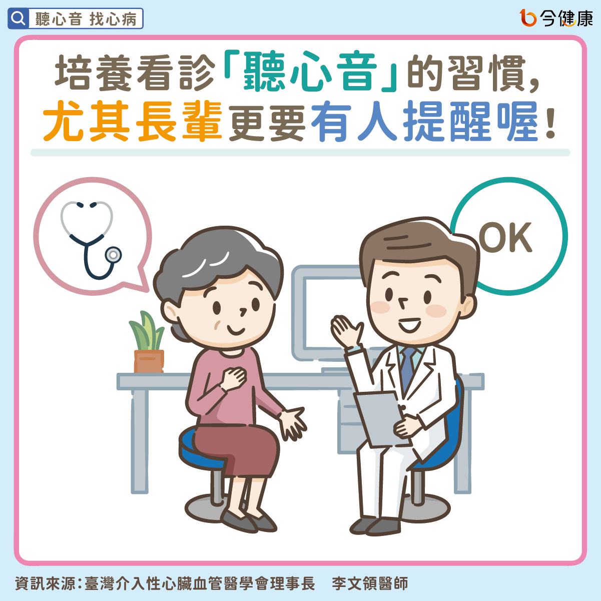 學會還特別在文宣放上「小朋友用聽診器幫爺奶聽心音」的照片,希望提醒家人們一起守護長輩健康。除了平時多關心,一但家中長輩有全身無力、走路會喘等看似跟心臟無關的症狀時,千萬不要以為只是老化,陪同就醫時即便是在家裡附近的家醫科、耳鼻喉科診所,一樣可以請醫師幫忙聽個心音。一但發現心臟雜音、再轉診心臟專科進一步檢查。