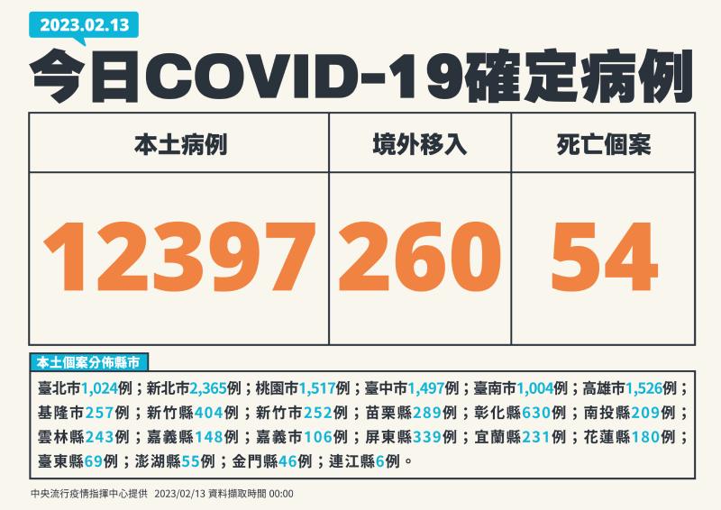 【健康醫療網/記者吳儀文報導】中央流行疫情指揮中心今(13)日公布國內新增12,657例COVID-19確定病例,分別為12,397例本土個案及260例境外移入;另確診個案中新增54例死亡。