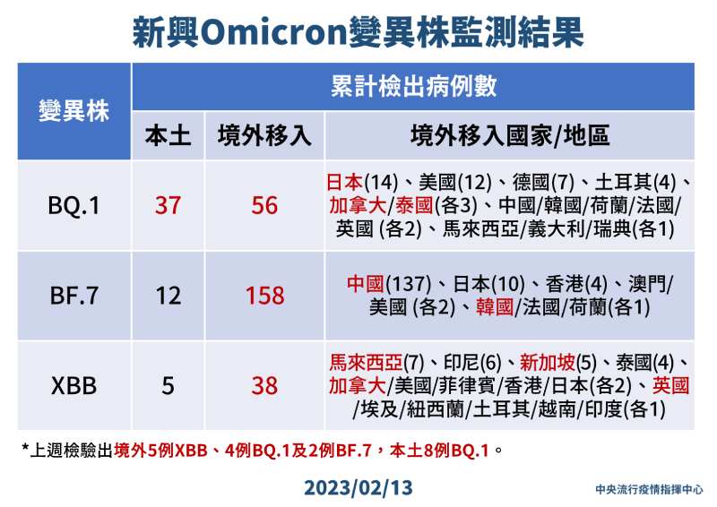 目前,本土仍未出現XBB.1.5的個案,境外移入則已累計2例XBB.1.5病例,皆由加拿大入境,都屬於輕症個案。