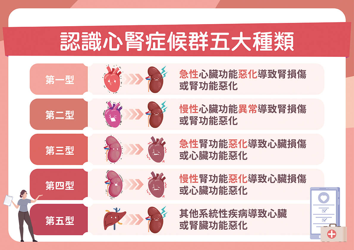 第四型:慢性腎功能惡化導致心臟損傷或心臟功能惡化。