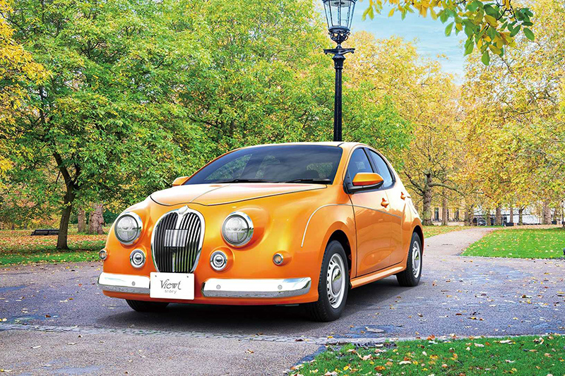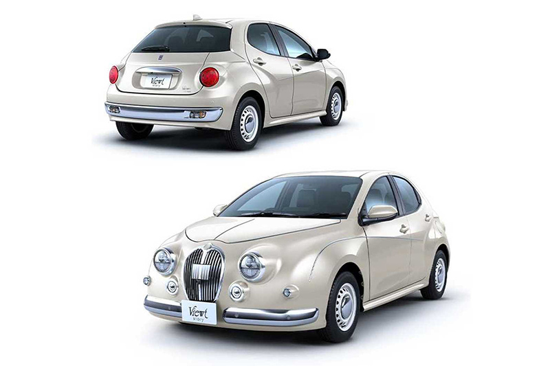 Mitsuoka Viewt是一款仿自Jaguar Mark 2所開發的車系,過去大多是以Nissan Micra/March為基礎改造,累積總銷量達13,000輛以上,但最新的一代則是改選擇了Yaris為基礎平台,全新一代Viewt Story依然延續過去小巧圓潤外型,加上經典的雙圓頭燈與雙圓尾燈,從外觀上已經完全看不出來它是一輛Yaris。