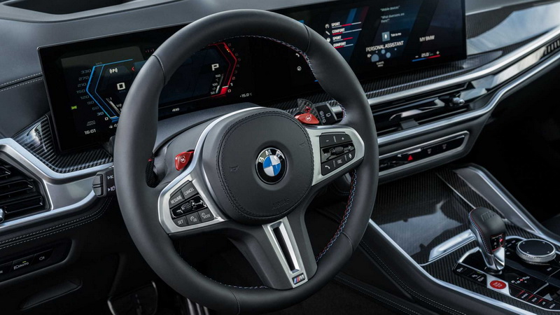 小改款BMW X5 / X6 M Competition與標準車型最大不同之處除了換上專屬的M板空力套件外,另外在水箱罩、前保桿進氣口、前分流器、排氣尾管及後擴散器等處皆施以黑化處理,同時換上尺寸更大的前21吋後22寸之胎圈,車漆部分則提供多達50款的特殊色供車主選購;內裝部分則依循小改款後導入的12.3吋數位儀表加上14.9吋中央觸控螢幕所建構而成的大尺寸曲面螢幕,在開關機動畫還有專屬的M迎賓畫面,其餘像是M款方向盤、碳纖維換檔撥片及飾板、Merino皮革、跑車座椅、Harman Kardon及全景天窗等皆是M Competition版本的標配項目。